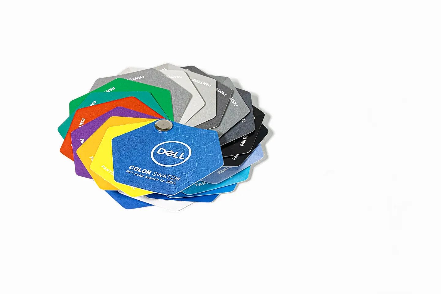 The DELL Color Swatch is a color reference tool specifically designed to ensure that the colors used on server labels meet DELL’s standards. It aims to maintain consistency in color standards throughout the manufacturing and quality control processes. The design concept is rooted in the aesthetics and functional needs of DELL server products, featuring a unique hexagonal shape inspired by DELL’s server design elements. This shape not only provides visual recognition but also allows users to conduct precise color matching operations while holding the swatch. Each swatch has a surface that is half glossy and half matte, enabling accurate color comparisons on different printing surfaces. The Pantone color codes are clearly marked to ensure consistency and accuracy. The swatch measures 7 cm in width and 6 cm in length, and includes 18 colors, making it ideal for use by label printing companies and DELL’s quality control units. The overall design emphasizes a combination of practicality and aesthetics, providing users with an efficient and intuitive color management tool that reflects DELL’s stringent attention to design details and quality.
